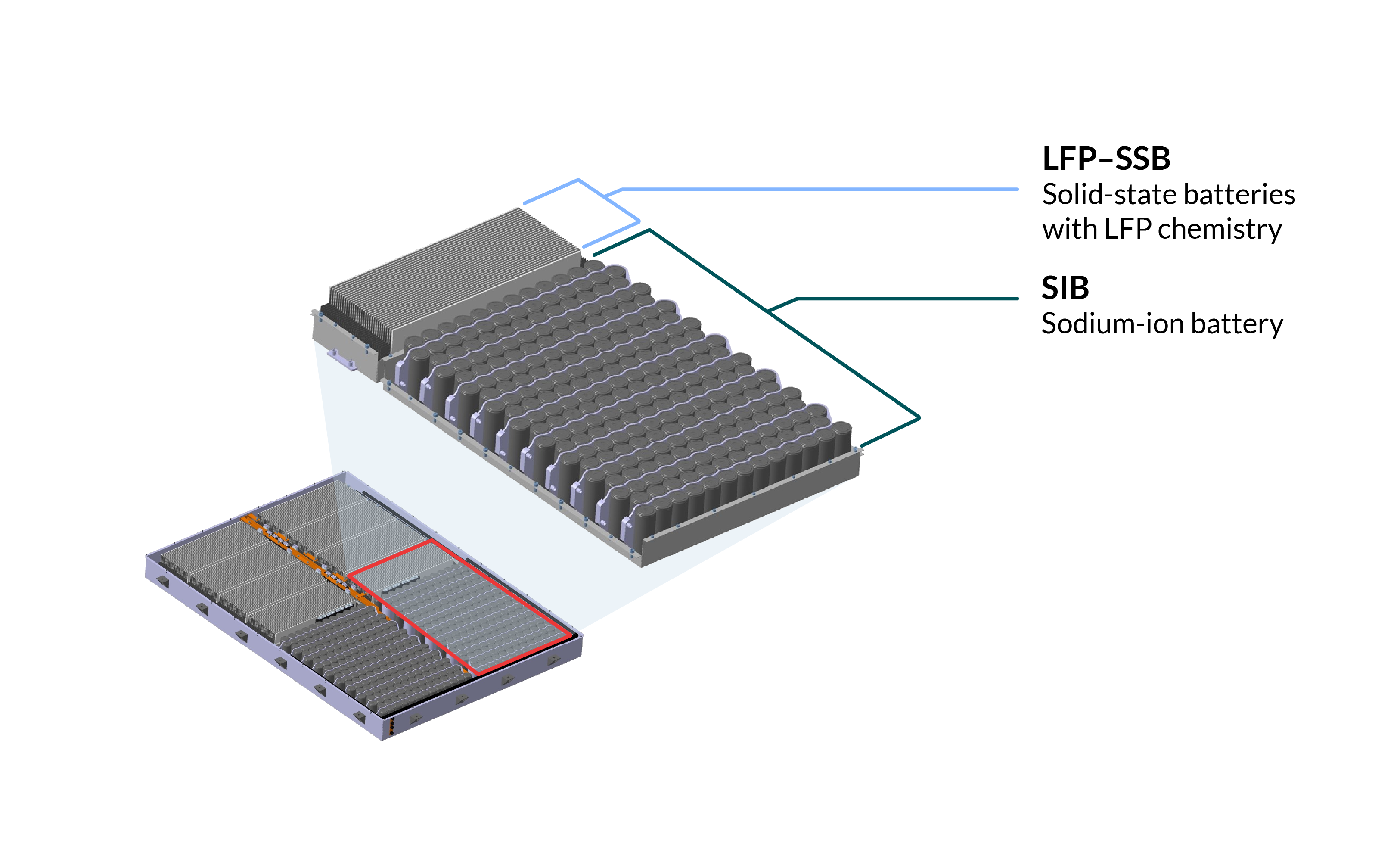 IAV's twin-battery design was also developed, in part, to test the thermal compatibility between an SIB and LFP-SSB. The idea was that channeling the waste heat from the SIB into the LFP-SSB would rapidly activate the latter's solid-state cells and push them into the higher temperature ranges where they perform best5 — while simultaneously keeping the SIB from exceeding its maximum operating temperature and increasing the system's overall energy efficiency.